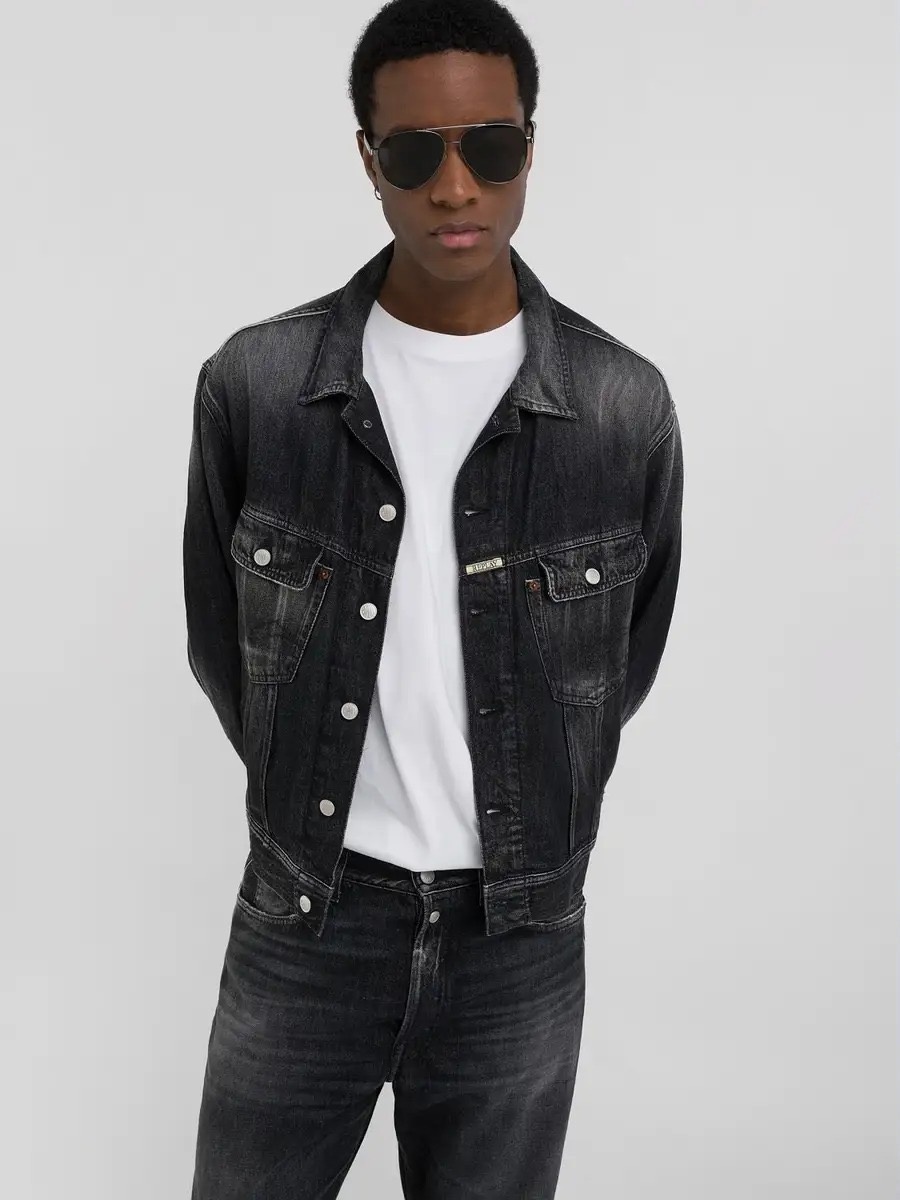 Куртка в винтажном стиле 90-х годов из переработанного черного хлопкового денима плотностью 12 унций с эко-стиркой и сухой отделкой на манекене, переработанная с современным краем. Эта модель отличается созданными вручную усами и отшлифованными деталями, а также потертостями по краям карманов и на подоле, что создает легкий цветовой контраст в местах износа. Функциональные передние карманы на пуговицах, боковые карманы, регулируемые детали на подоле и застежка спереди, на которой также есть небольшая этикетка с надписью Replay, дополняют эту мужскую джинсовую куртку.
