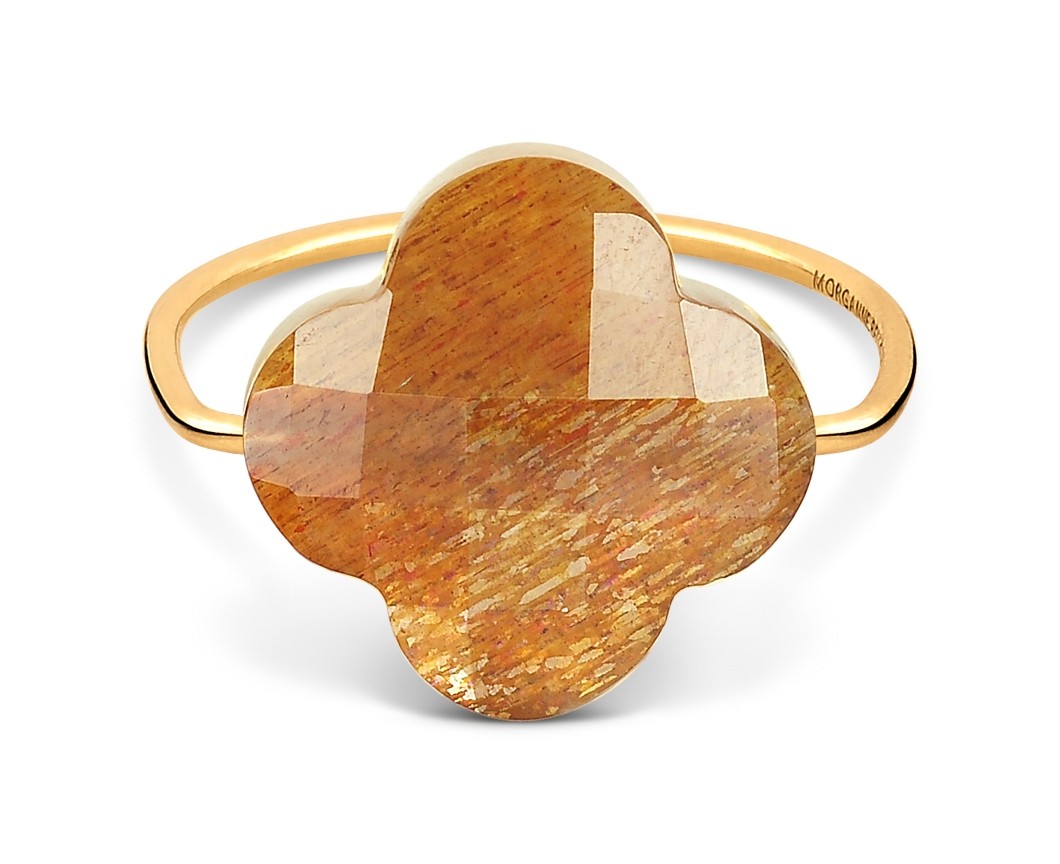 Подробности: Кольцо из желтого золота 750 пробы, клевер, большой солнечный камень (8,20 карата)
