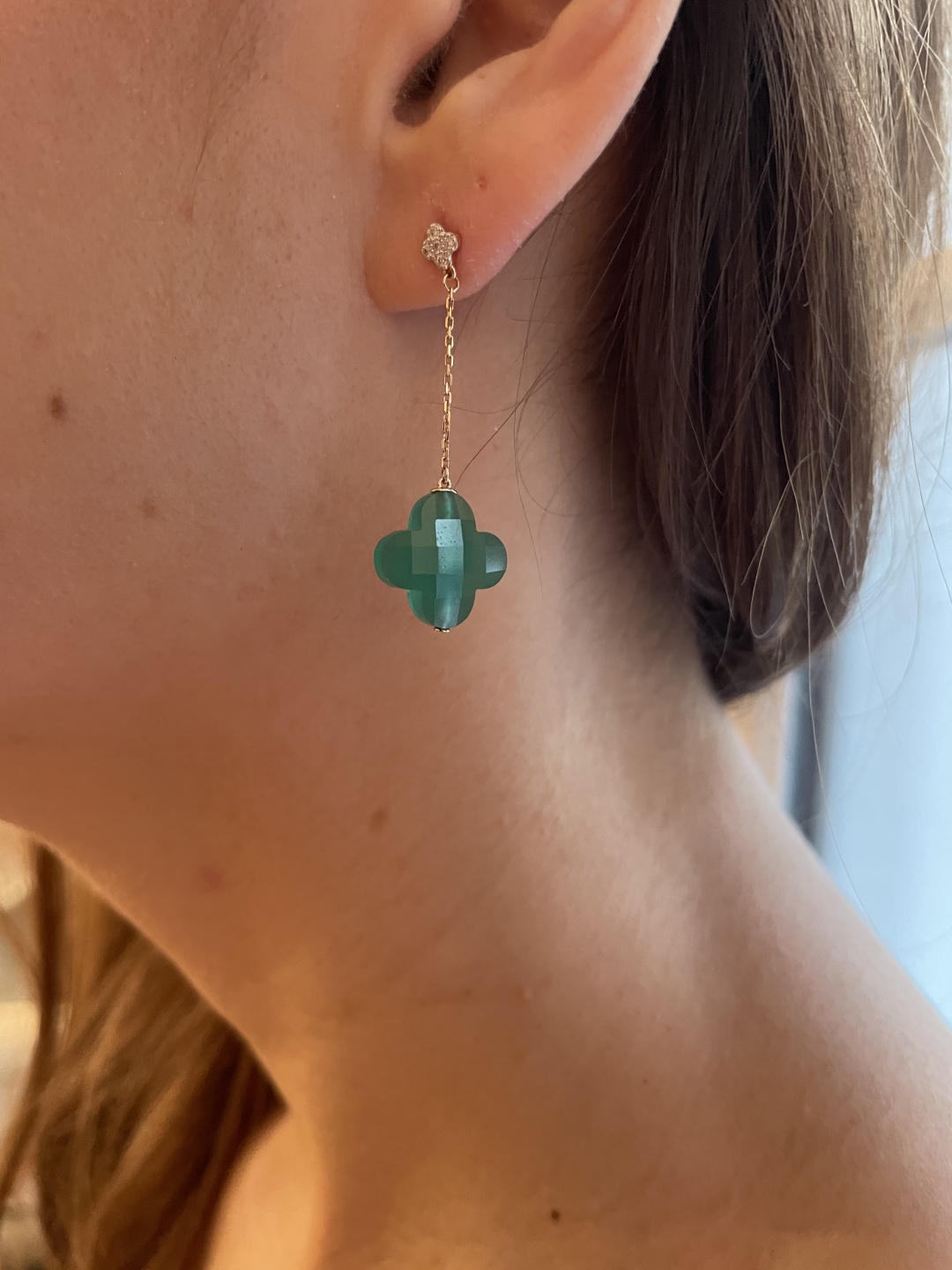 Подробности: Серьги Желтое золото 750 пробы, зеленый агат (10,14 карата) и бриллианты (0,070 карата)